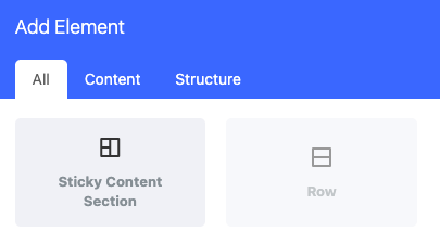 Sticky Content Section and Row elements as child items.